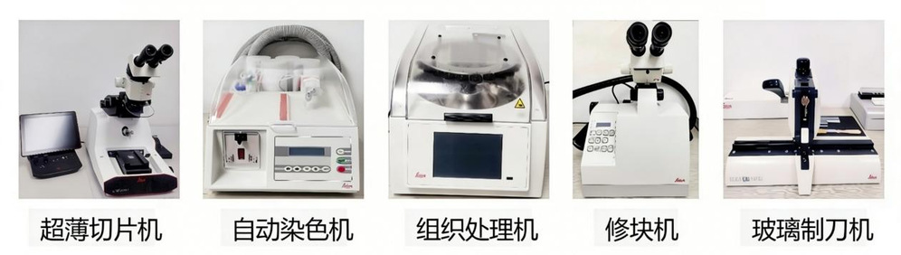 平台配备超薄切片机(徕卡UC Enuity))、自动染色机(徕卡EM AC20)、组织处理机(徕卡EM TP)、修块机(徕卡EM Rapid)、玻璃制刀机(徕卡M KMR3)等专业制样设备,可完成块状生物样品固定、脱水、包埋、修块、超薄切片等全流程制备,为透射电镜高质量成像提供稳定可靠的样品支撑,满足生命科学研究需求。